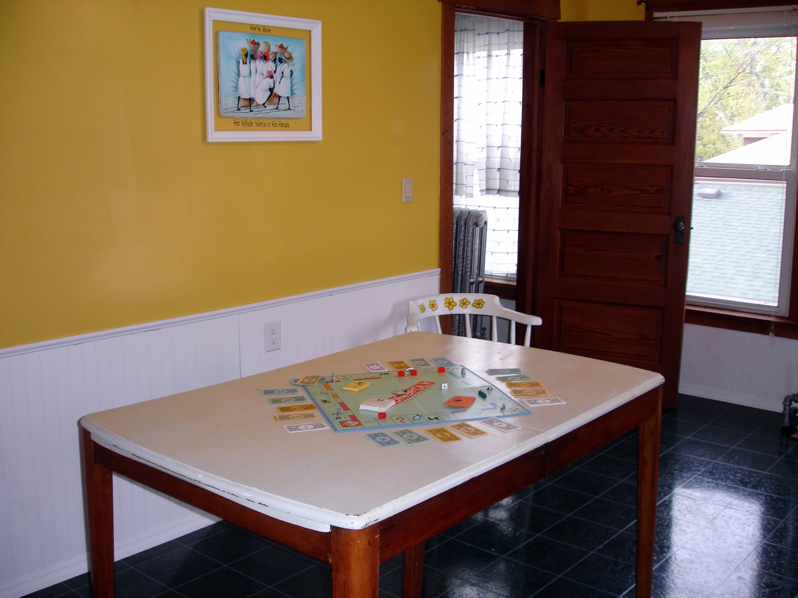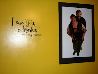 I decided that I wanted to put this picture my husband brought home from a trip to Haiti. It is the focal picture for the room. For color flow from the TV room and the hall we decided on the yellow bandana for the color of the room.
