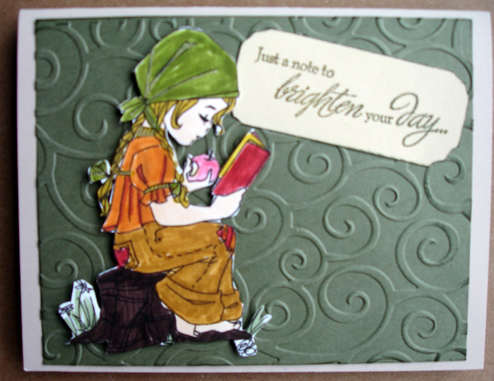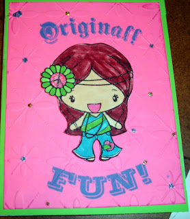 When I playing in the ArtHaven over the weekend I used a some of my colored images. This gal is a digi stamp from My Greeting Farm. She is a love of fun. The words are acrylic stamps from this months Close to My Heart's Stamp of the Month set.