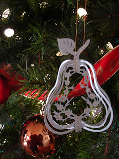 I decided to do the Christmas Ornament Swap in my ArtHaven Friendship Group. I used one of Pablo's files to make this Pear out of silver paper. I used gold stickles to accent the ornament. I've been busy working on Christmas present in the ArtRoom so hopefully I'll have a few more posts coming.