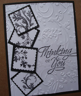 A very sweet gentleman from our church turns 85 years old today. I used a variety of small stamps in Poppy Parade and French Flourish stamp in black for the background.